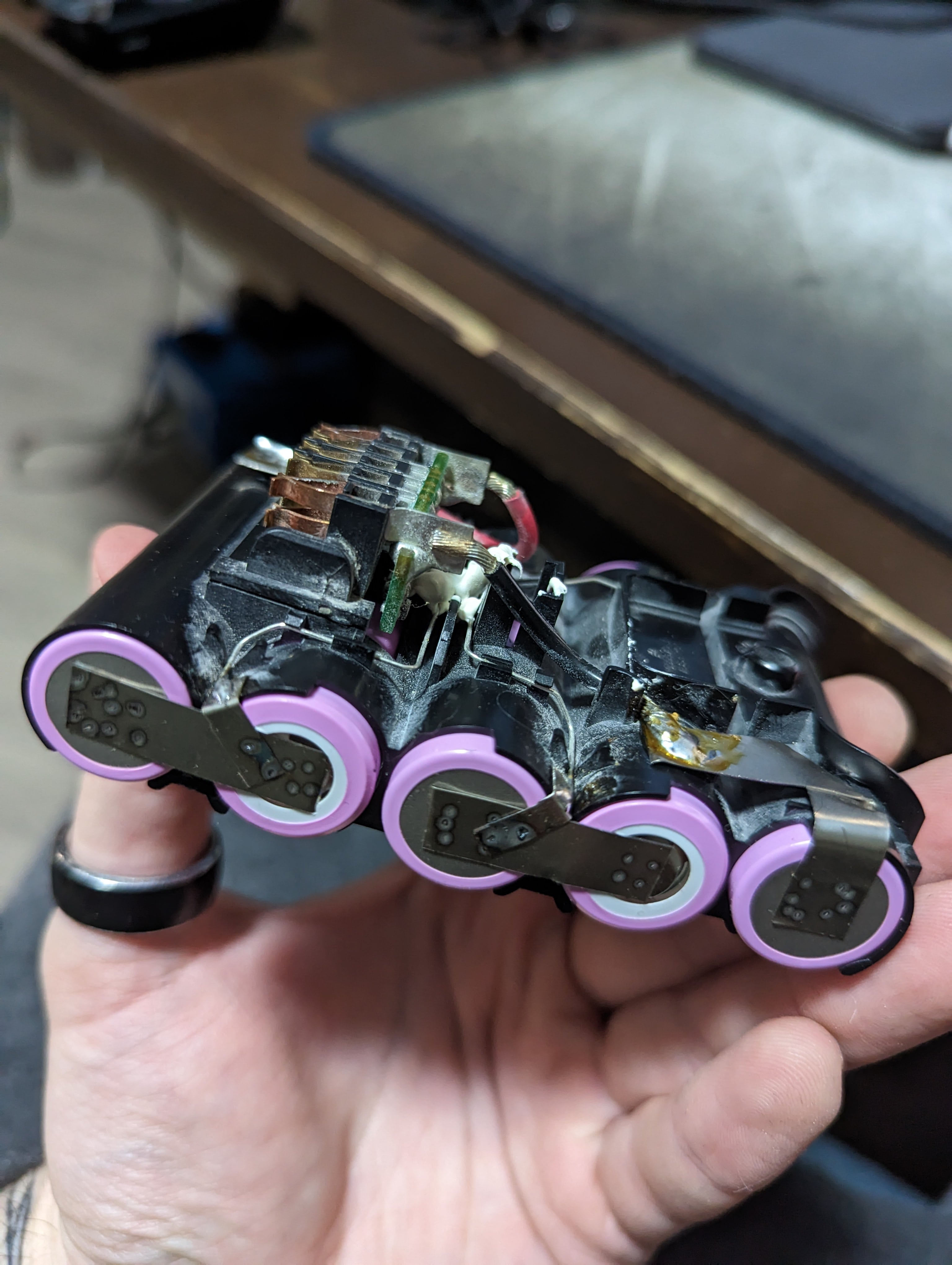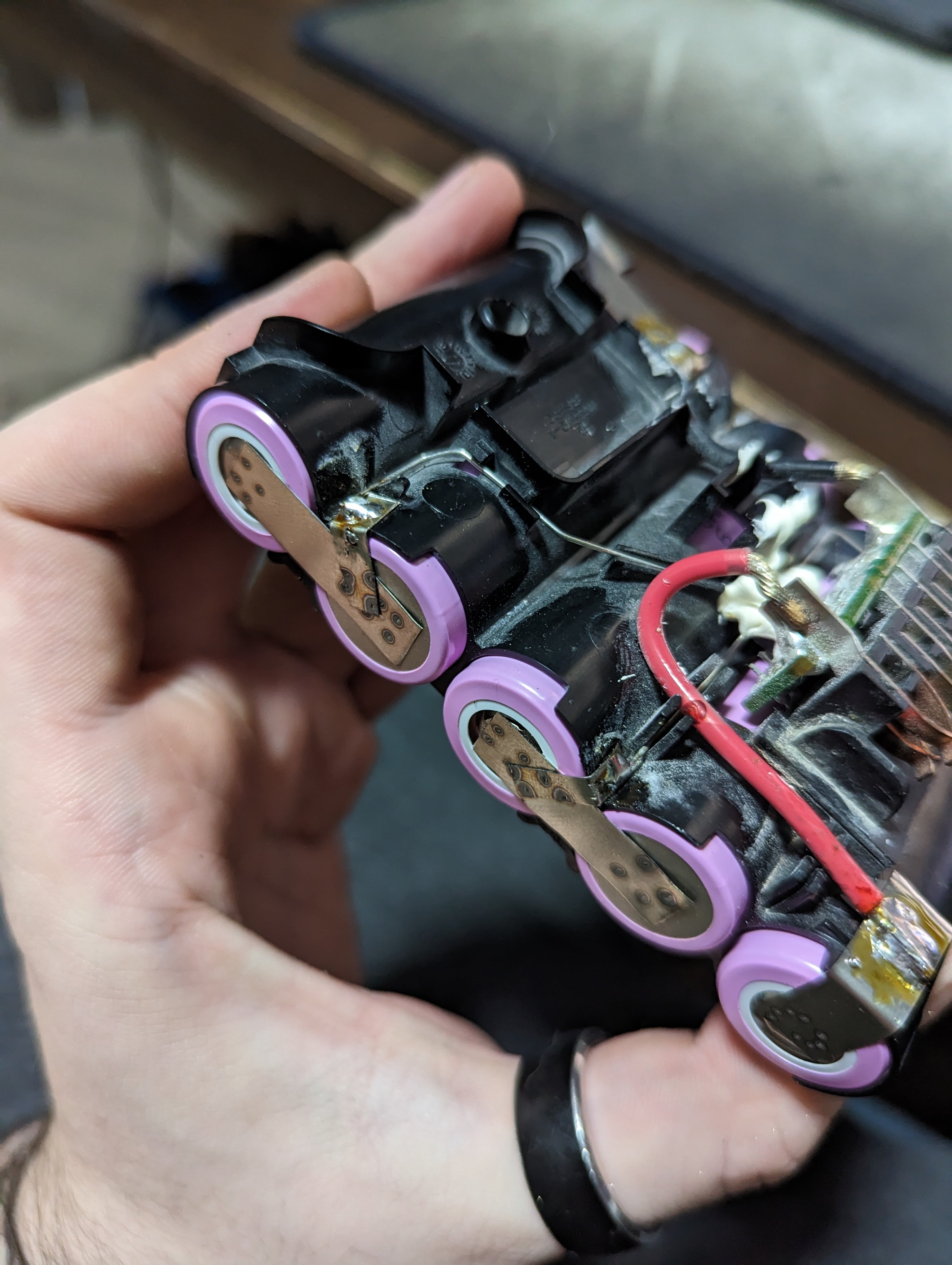 The whole pack was slightly bent upwards. This did not afflict the positioning or fitment too much, however it would be better if more care is put into aligning batteries while spot welding